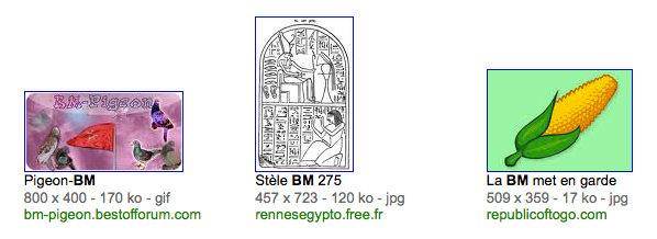 Répertoire d'images (gif, logo, captures d'écrans) trouvées sur internet, contenant le mot BM.